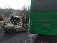 В місті Обухів автомобіль «ЗАЗ» виїхав на зустрічну смугу, де зіткнувся з маршруткою, троє людей загинуло