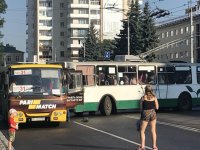 У центрі Луцька тролейбус в'їхав у маршрутку