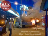 Увечері в неділю, 18 червня, біля станції метро Харківська в Києві загорілася маршрутка.