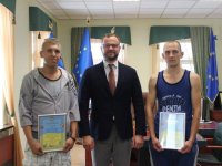У Луцьку відзначили водіїв Андрія Олімпіюка та Андрія Чуба, які здійснили вправний маневр і перепідключили тролейбус на лінію по інший бік дороги.