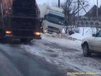 На виїзді з села Княгининок багатотонний тягач розвернуло і той в'їхав у кювет.