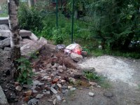 У Ковелі на вулиці Кониського після вкладання бруківки поряд із будинком залишили гори будівельного сміття.