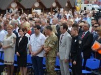 Цьогоріч почесну місію підняти державний стяг було надано учасникам антитерористичної операції на Сході країни