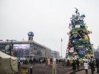 Учасники Майдану в Києві готуються до Нового року ‒ ставлять ялинки біля своїх наметів