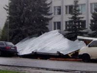 В обласному центрі Волині порив вітру зірвав дах та жбурнув його на автомобілі