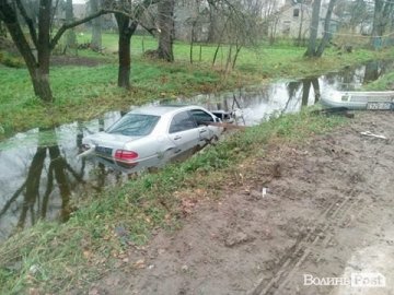 Аварія на Волині: авто збило стовп і «потонуло» в каналі. ФОТО