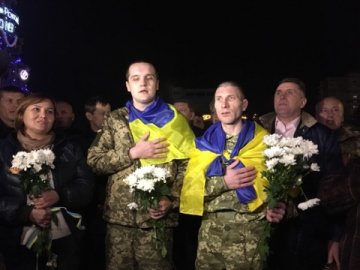 Сотні лучан на Театральному майдані чекали на повернення бійців, звільнених із полону терористів.