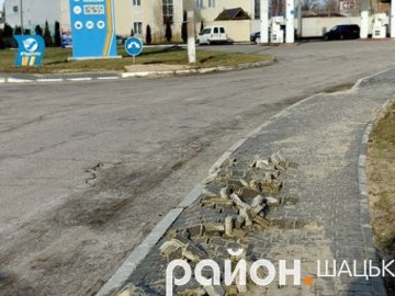 У волинському райцентрі Шацьк вантажівка зруйнувала тротуар. Водій із місця події зник.