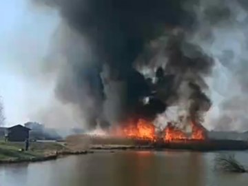 На відео, яке 10 квітня опублікували в Facebook, зафіксовано сильний вогонь, який охопив суху рослинність посеред водойми.
