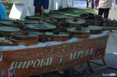На Театральному майдані лунає музика та облаштували свої ятки торговці продукцією народних ремесел. Тут можна придбати цікаві дерев'яні вироби чи традиційний глиняний посуд, красиві прикраси із бісеру та ляльки-мотанки.