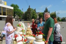 Окрім ого, на Театральному майдані презентують красиві короваї, а аткож встановили скриньки для збору благодійної допомоги - цьогоріч заучені кошти направлять на будівництво храму у місті-побратимі Луцька Волновасі.