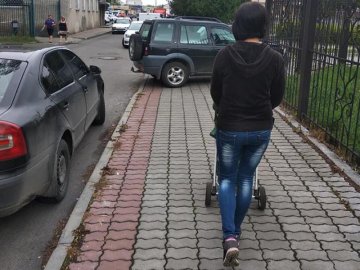 Як видно із фото, водії автівок припаркувались на тротуарі таким чином, що мами з візочками, змушені обходити їх і йти проїжджою частиною.