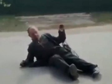 Зазначимо, що хтось з компанії, хто знімав все, все ж допоміг постраждалому піднятися.
