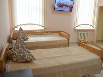Завідуючий відділенням Ігор Рибак провів екскурсію і показав, що на сьогодні вдалось зробити. А це — дві палати для хворих. Там уже встановлено зручні меблі, телевізори. Одна з них має власний санвузол з душовою кабіною.