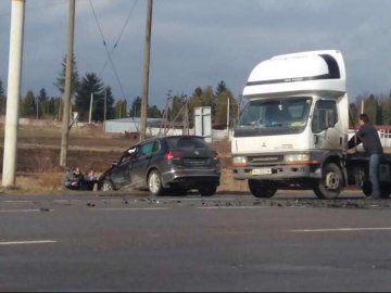 Поблизу Луцька при виїзді з села Гаразджа трапилась дорожньо-транспорта пригода за участю Volkswagen і вантажного автомобіля Mitsubishi.