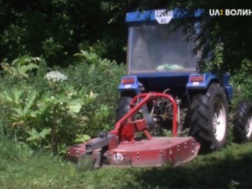 Трактори луцького комунального підприємства «Парки та сквери» сьогодні вздовж дитячої залізниці викошували борщівник. За роботою комунальників стежить Валентин Вальков, він живе поруч. Каже, що вперше бачить, що у цій частині міста техніка підрізає борщівник.