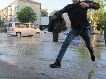 5 травня в Житомирі з'явилось перехрестя, яке не можна перейти - через прорив водопроводу проїжджа частина була залита водою.