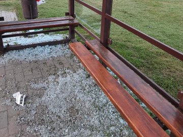 Як видно з фотографій, опублікованих у соцмережі, вандали побили скло, з якої зроблена зупинка громадського транспорту.