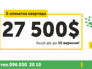 Площа акційних квартир – 63,2 м2. Ціна - $ 27 500. Можливе розтермінування за умови першого внеску 50%, - йдеться на сайті забудовника.