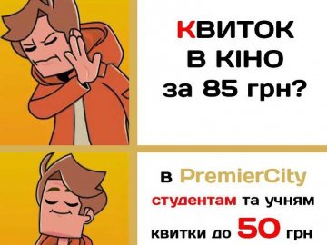 Зазначається, що вартість квитків для учнів та студентів у кінотеатрі Premier City – всього 50 гривень на будь-який сеанс до кінця вересня.
