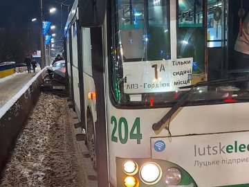 У Луцьку на шляхопроводі, що з'єднує проспекти Соборності та Перемоги, сталася дорожньо-транспортна аварія за участю тролейбуса та автомобіля.