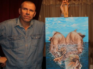 – Мене часто запитують, що це за дівчина зображена на полотні? Це наш Крим, – каже художник. – Сонце, яке сходить, та голуби на полотні – сподівання, що все у нас буде добре.