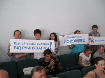 Під стінами міської ради відбувся мітинг лучан, що незадоволені постійним підтопленням їхніх будинків.