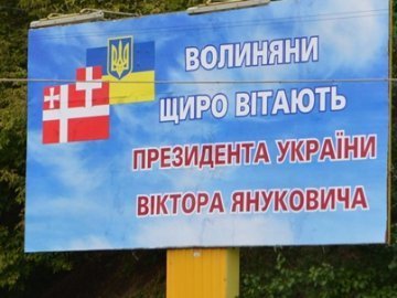 Напереодні приїзду у Луцьк довгоочікуваного президента України Віктора Януковича у місті на шляху, яким, ймовірно, рухатиметься президентський кортеж, розмістили біл-борди з вітанням Януковичу.