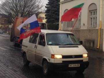 Депутати Луцької міської ради Олександр Пиза і Андрій Осіпов на своїх сторінках у Facebook опублікували фото, на яких видно, що вулицею Богдана Хмельницького їде аж один (!) мінівен Volkswagen, з вікон якого розвіюються державні стяги Росії і Білорусі.