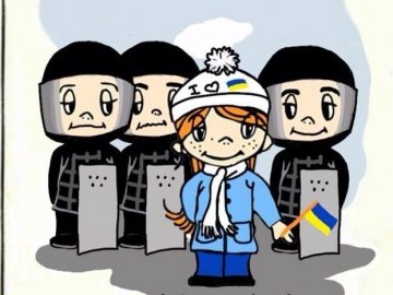 В інтернеті стають популярними картинки з сюжетами на тему Євромайдану, виконані у стилі вкладишів жувальної гумки "Love is…".