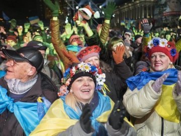 А от у Новий рік українці увійшли, виконавши хором гімн України, який тягне на рекорд. При цьому він супроводжувався тисячами вогників від ліхтариків. Увесь Майдан світився.