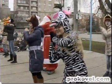 Всі учасники новорічного флешмобу отримали від Діда Мороза та Снігуроньки солодощі.