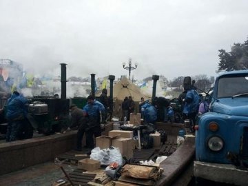 Для підгодовування антимайданівців в Маріїнському парку було встановлено близько 10 польових кухонь, біля яких вишикувались довжелезні черги голодних протестувальників