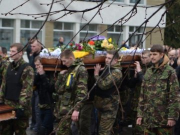 Домовину із загиблим Героєм Майдану Василем Мойсеєм пронесли вулицями Луцька до місця поховання на Меморіалі Слави.