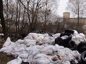 Шини та мішки з піском, які використовувалися як матеріал для будівництва барикад навколо приміщення Волинської обласної ради, вивезли та вивантажили неподалік Луцького замку в парку.