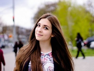 Сьогоднішня героїня рубрики - школярка. Сфотографували її ми у позаурочний час на зупинці громадського транспорту. Ліза розповіла, що навчається у 9 класі, а ще займається музикою і танцями. У майбутньому бачить себе або адвокатом, або журналістом.