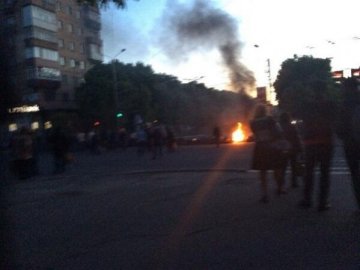 Відтак, центральна вулиця міста перекрита автомобільними покришками та тролейбусами, - пише "5 канал".