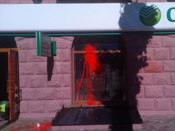 У Луцьку вікна «Сбербанку» заляпали фарбою. ФОТО