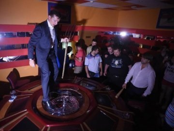 Ігрові автомати він трощив битою, а потім виліз на гральний стіл з рулеткою і топтався по ньому ногами.