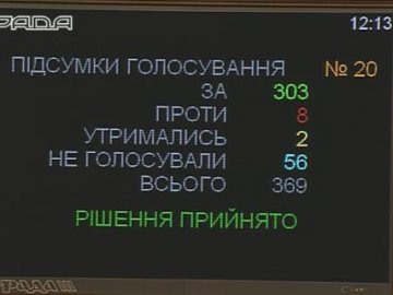 На розгляд депутатам було запропоновано чотири законопроекти. Рада підтримала законпроект, який вніс Президент України Петро Порошенко. Його підтримало 303 народних депутата.