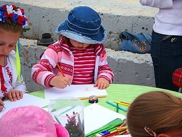 У центрі Луцька на Театральному майдані в День захисту дітей організували конкурс малюнка, збирали дитячі фантазії у скриньку та вчили дітей грати рок.