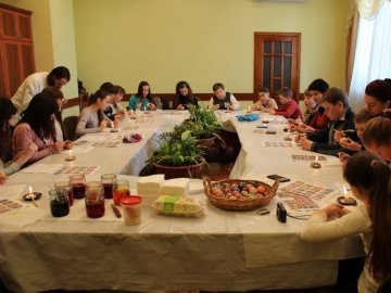 У приміщеннях арт-галереї “Луцьк” та Палацу культури міста Луцька відбувся майстер-клас з писанкарства для дітей, які прибули до Луцька з міста Волноваха Донецької області.