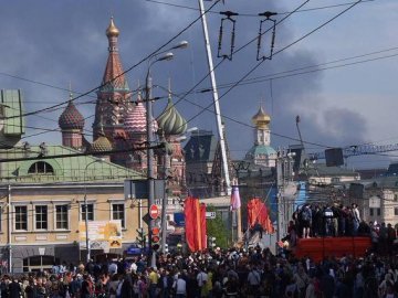 Площа пожежі складає 500 квадратних метрів. Дим видно навіть на Червоній площі, де проходить парад до 70-ї річниці Дня перемоги. На місці пожежі працюють кілька пожежно-рятувальних підрозділів.