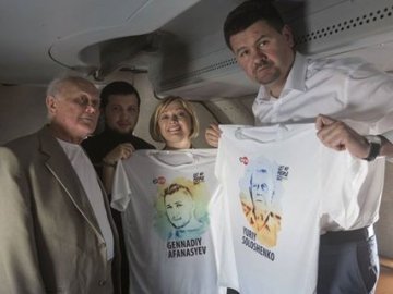 Згідно із повідомленням Святослава Цеголка, прес-секретаря Президента, бранці Кремля Солошенко і Афанасьєв вже знаходяться в українському літаку.