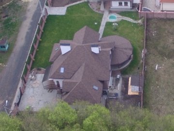 На 13 сотках землі збудовано великий будинок, гараж для двох авто, господарська споруда, постелено газон та все це обнесено високим парканом.