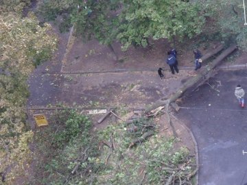 В результаті сильного вітру з ранку в місті падають дерева, впали два підйомних крани. У першій половині дня в результаті падіння дерев загинула 79-річна жінка.