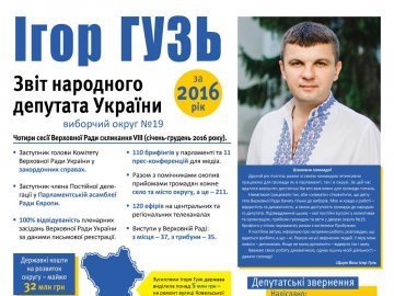 Народний депутатвід волинського мажоритарного округу №19 Ігор Гузь прозвітував про роботу у Верховній Раді та на окрузі за 2016 рік.