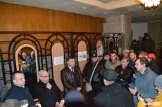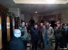 Активісти не дочекалися Гунчика і спробували зайти в кабінет до нього, в якому були депутати облради Анатолій Вітів і В'ячеслав Рубльов. Губернатор вийшов до них і попросив спуститися вниз.
