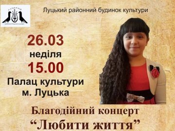 Задля цього у Палаці культури Луцька в26 березня відбудеться благодійний концерт «Любити життя».