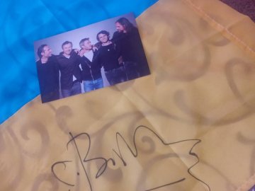 Державний прапор із підписом лідера гурту «Океан Ельзи» Святослава Вакарчука продає атовець із Волині Володимир Бабій задля порятунку Настусі Абрамчук.